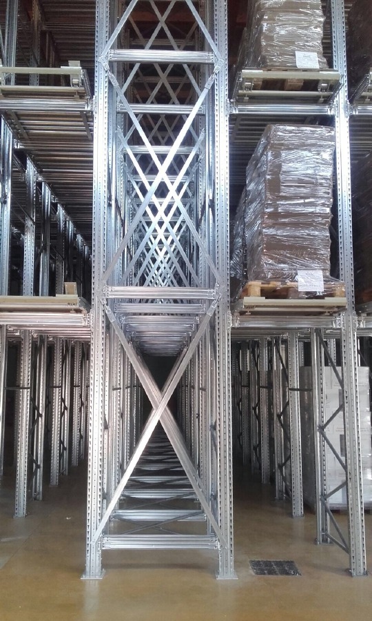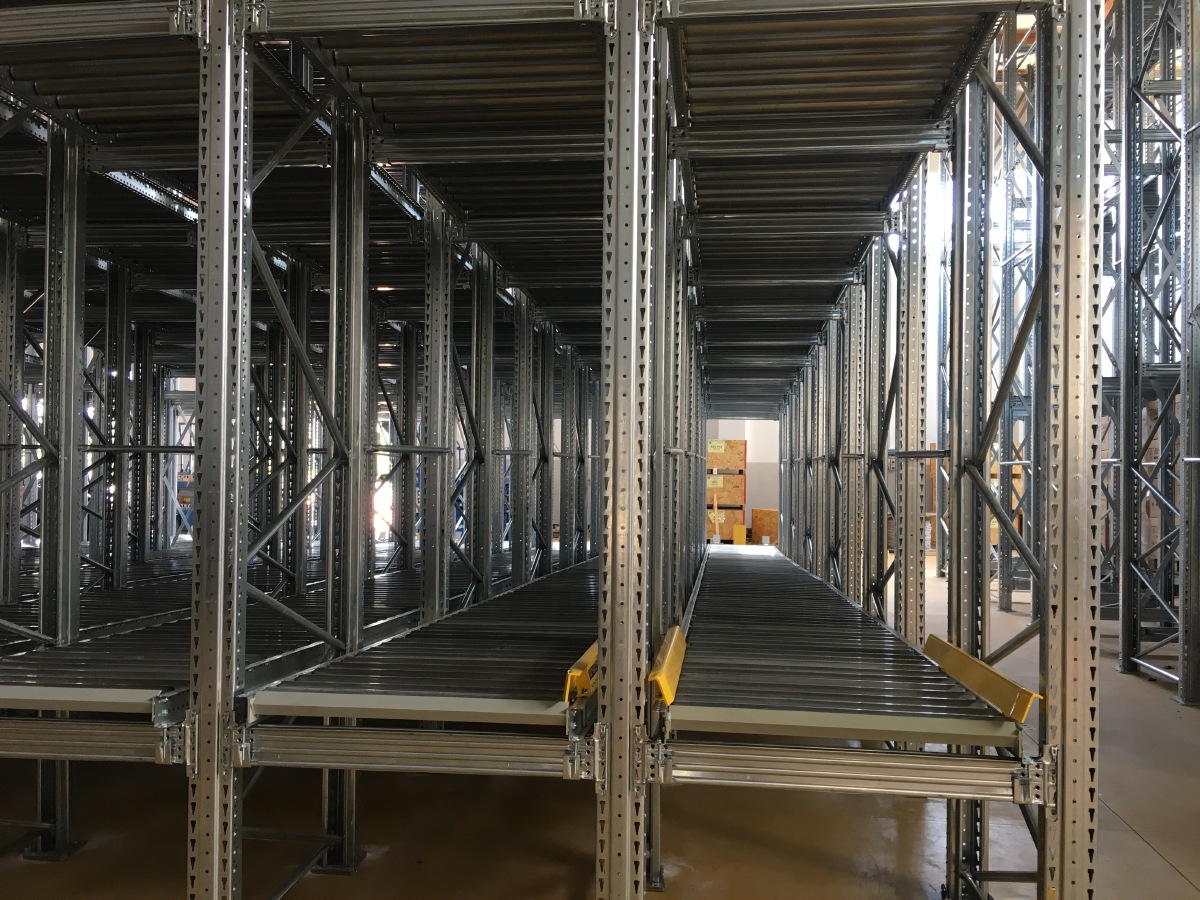 Scaffalatura portapallet a gravità con stoccaggio FIFO